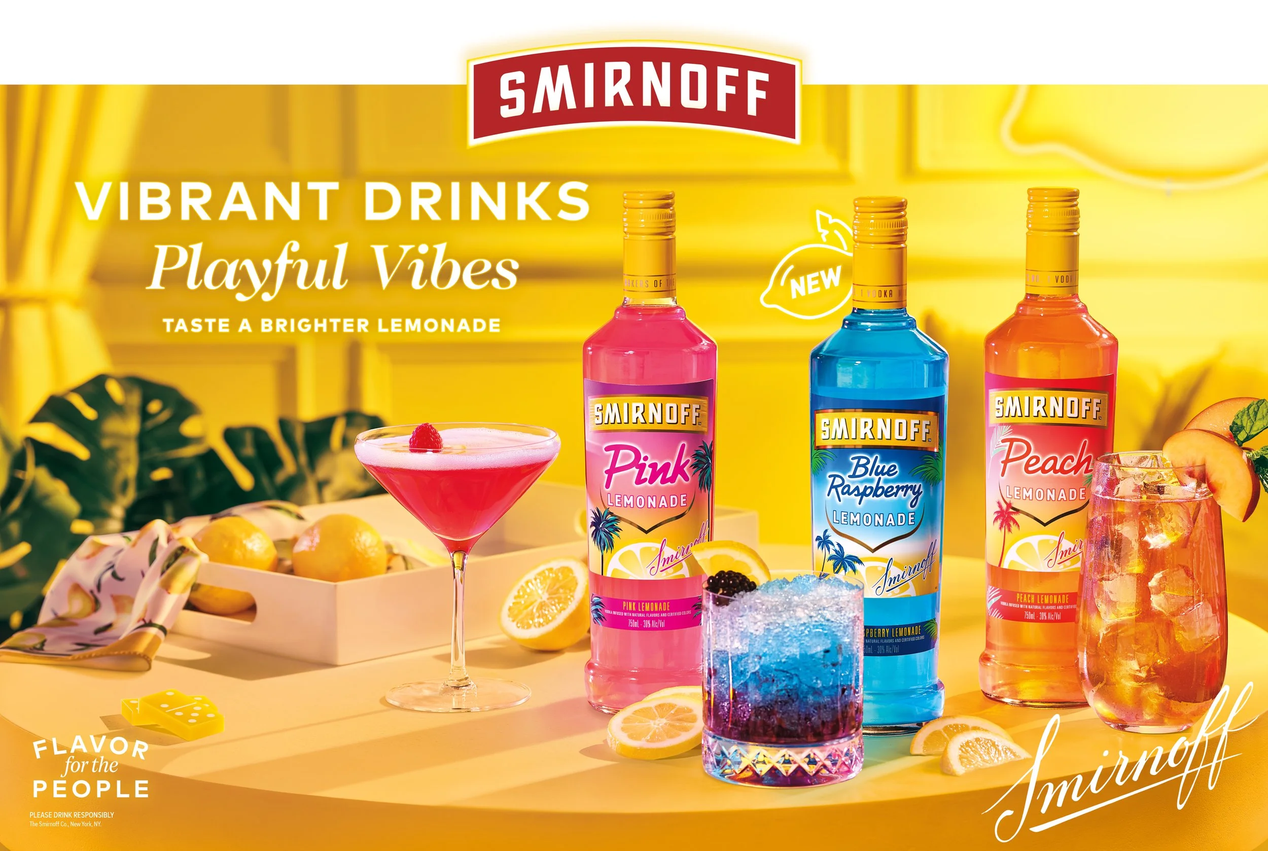 The Smirnoff Vodka Lemonade Portfolio brings the energy and excitement of a summer get-away, inspired by the escapist mindset of our thrill-seeking consumer. Utilizing monochromatic photography, we captured attention on social and at retail to launch the the newest flavor in the lemonade lineup: Blue Raspberry.
